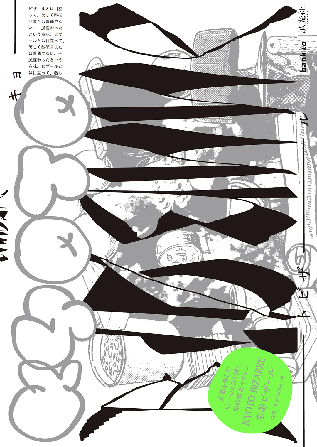 序章「序文 京都ビザール」/ 海外の眼/念/ 【ビザールな人】堀宗凡/路上の文字と看板/複雑な道、という人格/【ビザールな人】今貂子/オバツー/水無月/【ビザールな人】オオヤミノル/エクストリーム、豆/小商というポリシー 京都的な商売のかたち/【ビザールな人】奥祐斉/石石石/屋台と路上文化/【ビザールな人】古代人など